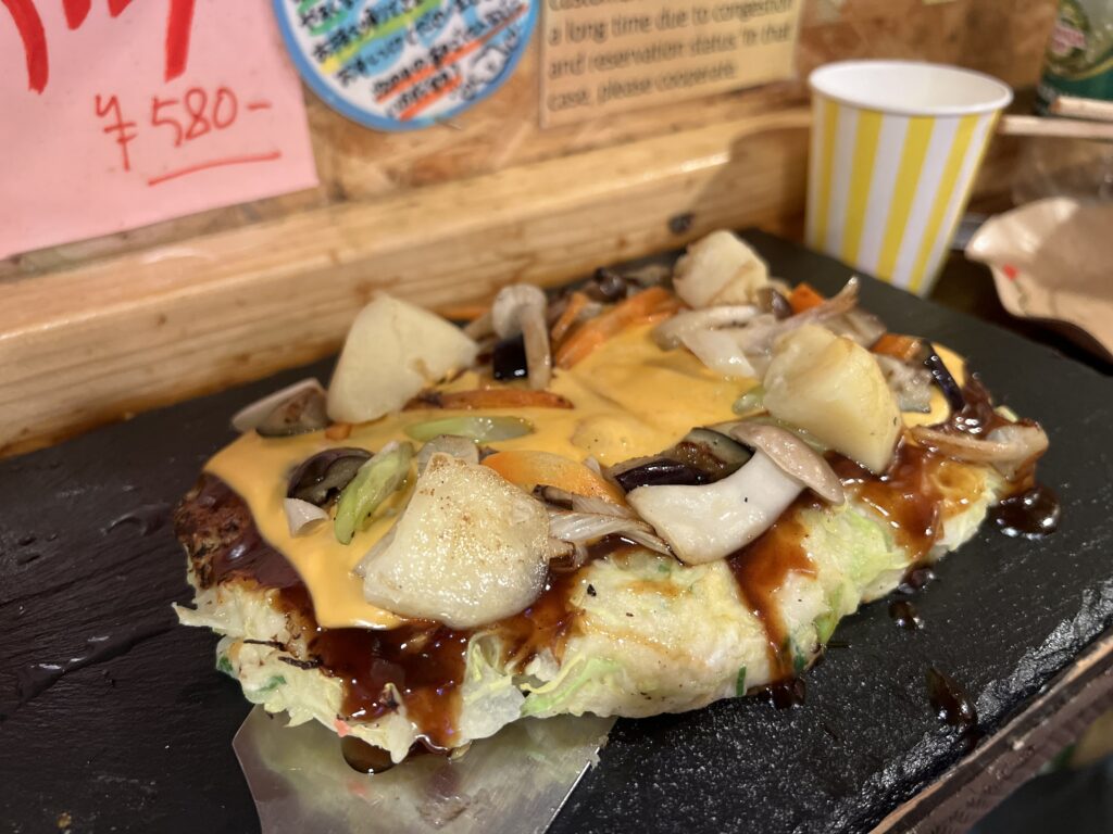 Another place in the Dotonbori neighbourhood, is OKO, a vegetarian/vegan spot. OKO is known for its Okonomiyaki. This dish can be best described as a thick pancake that consist of e.g., flour, egg, cabbage. There are also some other dishes like Yakisoba (stir-fried noodle) and gyoza’s. I have tried it all and they are all delicious.